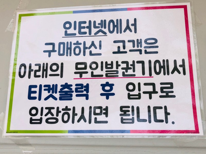 인터넷으로 할인권을 구매 후 무인 발권기를 이용해서 입장이 가능합니다.