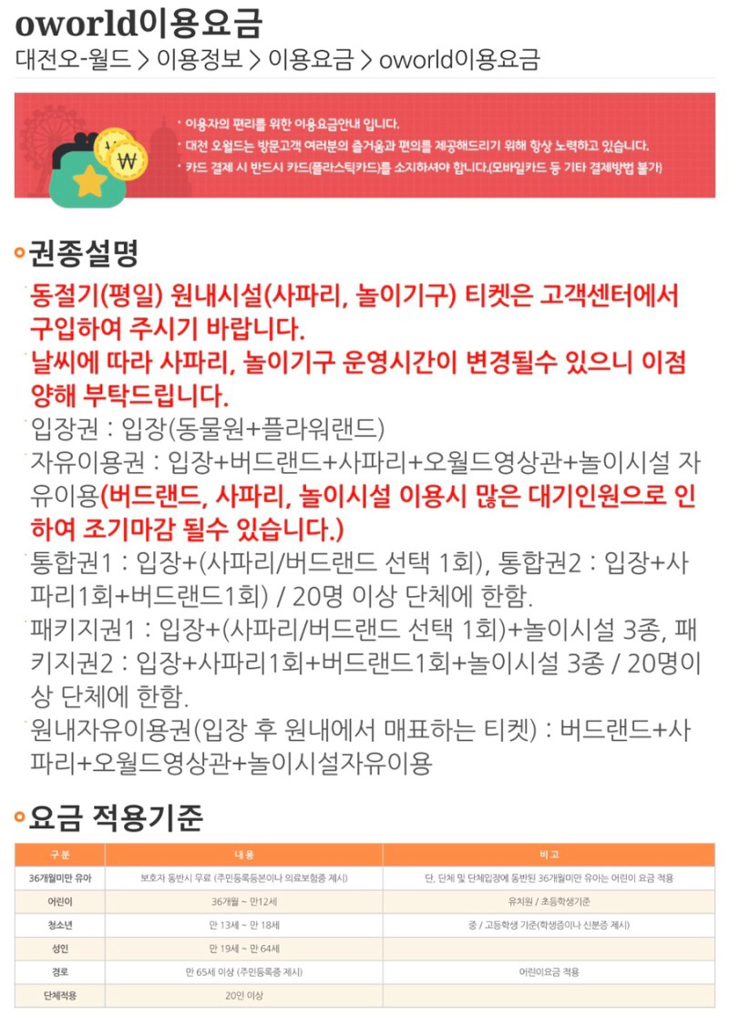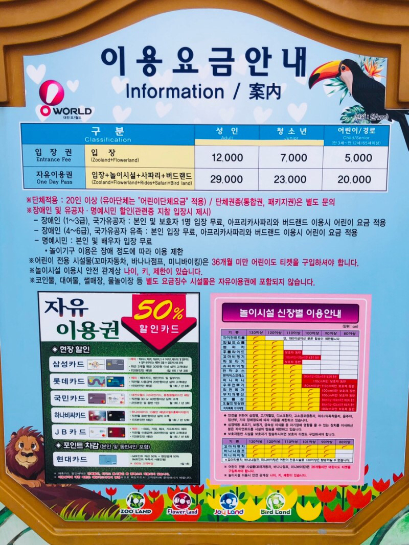 입장료 안내는 오월드 홈페이지를 참고했어요.