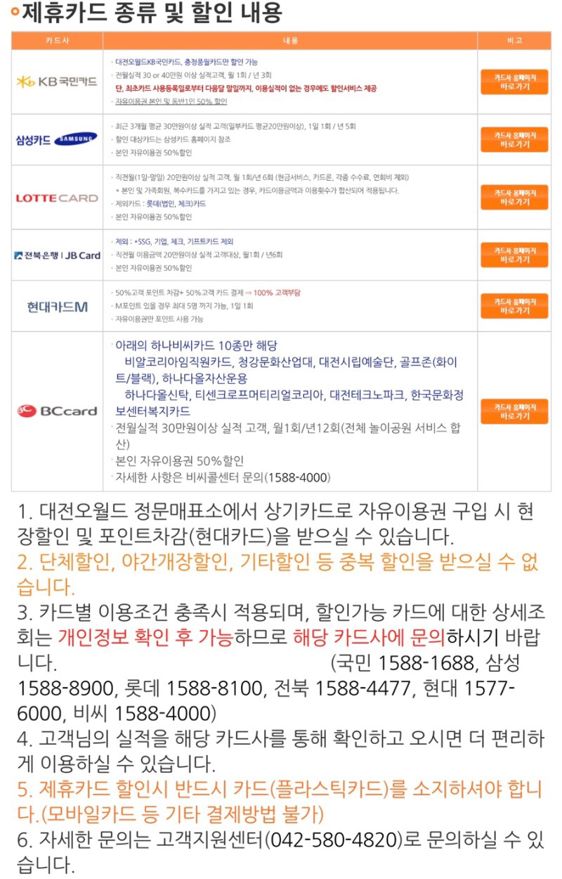 오월드 자유이용권 할인 방법으로 제휴카드 할인이 있는데요.