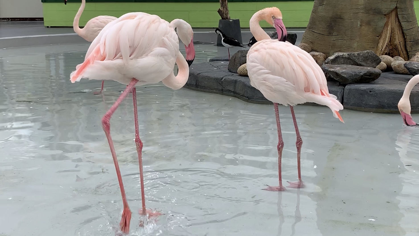 자유롭게 놀고 있는 홍학도 가까이에서 관찰할 수 있어요.