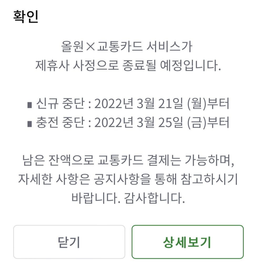 | 올원뱅크 교통카드 서비스 중지, 기존카드 그대로 계속 사용가능한 방법??(미래에셋페이) (1) | 2022.03.23 |