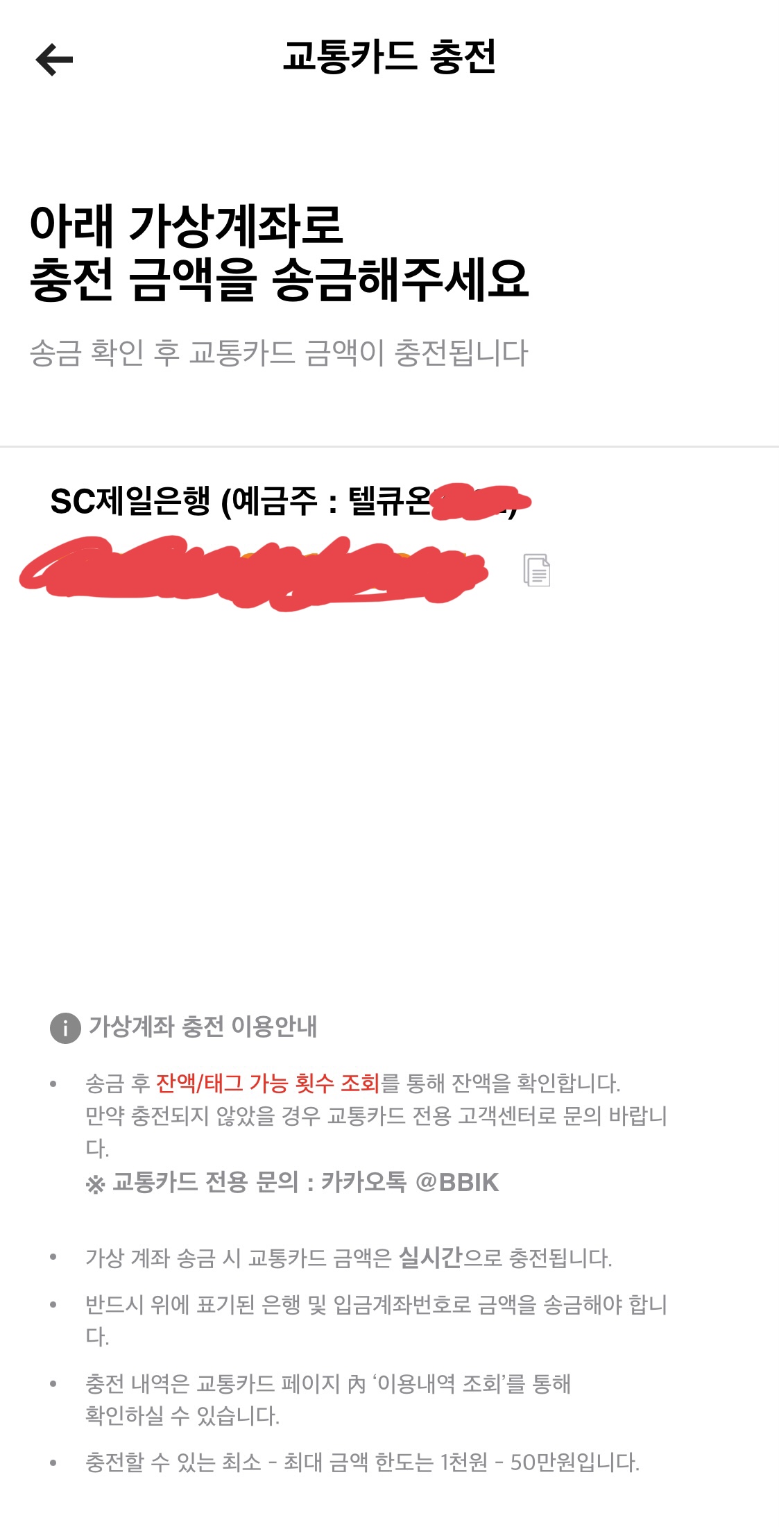 발급받으면 우선 충전금액이 없어 사용할 수없는데요. 충전을해야 사용이 가능합니다.